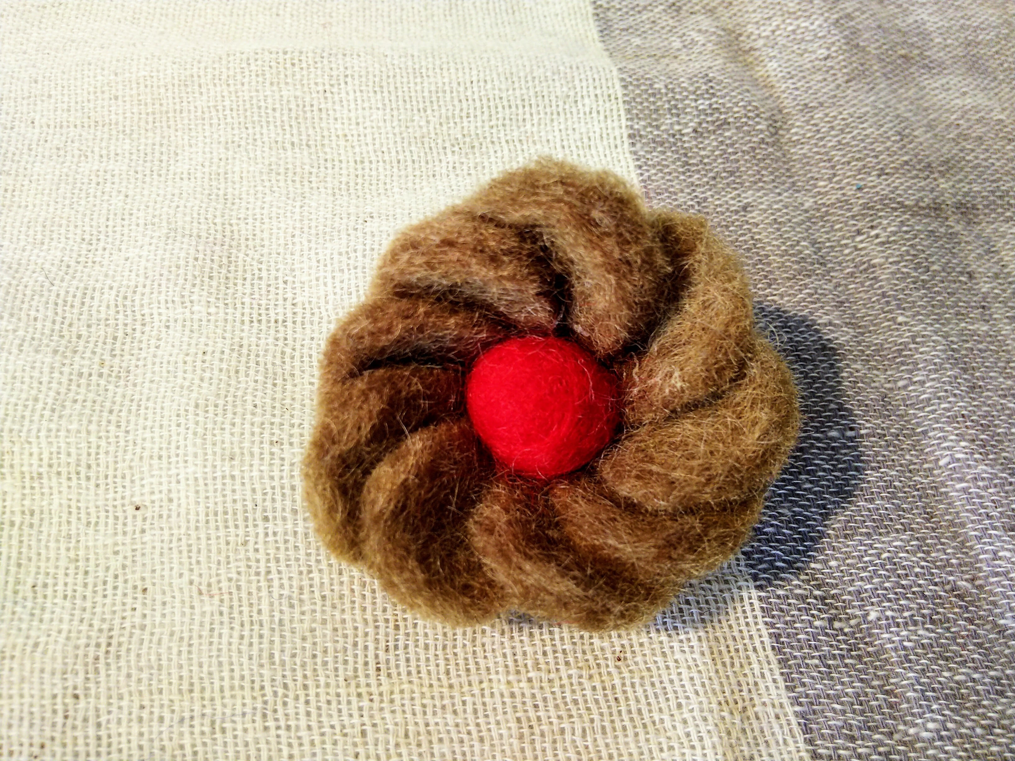 ネパールの女性が作ったフェルトのブローチです。直径約6cm。 ハンドメイドのため多少の誤差があります。 色はおまかせとなります。